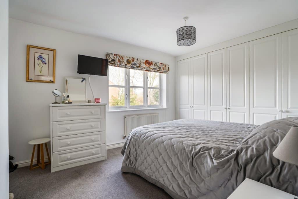 On the first floor, the good-size landing has a useful storage cupboard, and also connects to all three double bedrooms, the principal bedroom of which has the benefit of four built-in double wardrobes with shelving above and an adjoining en-suite shower room, comprising of an enclosed shower cubicle with rain-shower over, pedestal wash-hand basin and low-level wc