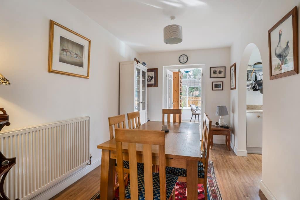 The dining room also has Karndean flooring, open access to the refitted kitchen and double doors opening to the garden room