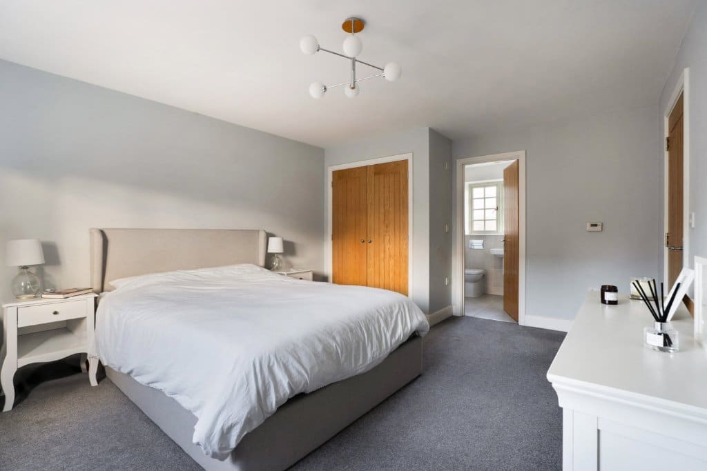 The generous principal bedroom has a double built-in wardrobe, a walk-in dressing room and separate en-suite shower room with mains-operated walk-in shower, floating wash-hand basin and concealed wc
