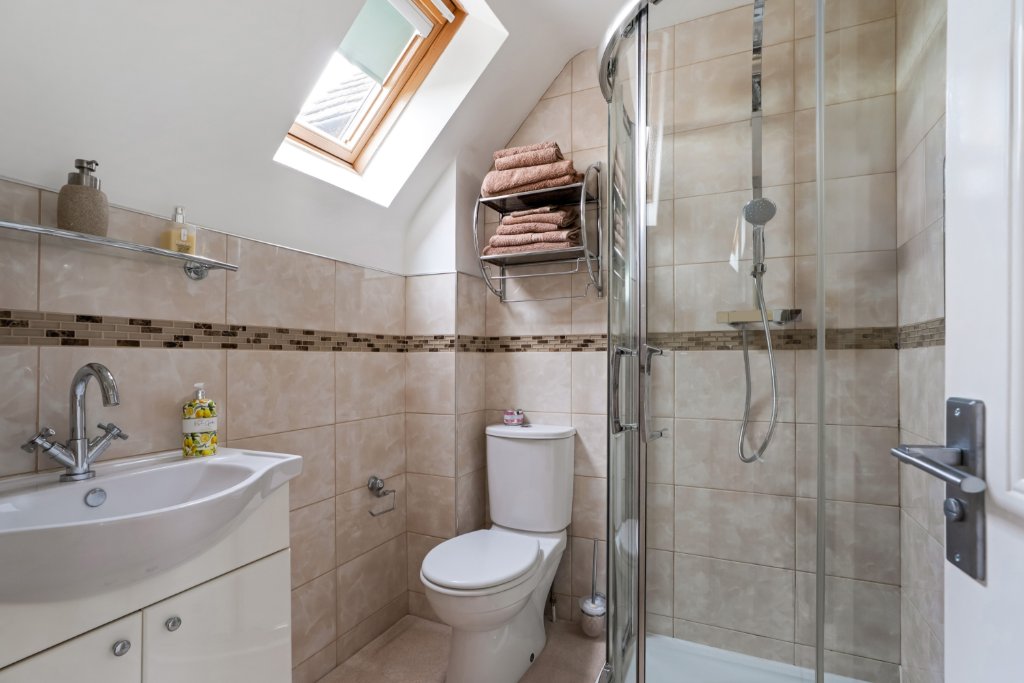 The family bathroom has a panelled bath with a mixer shower attachment, separate shower cubicle with mains-operated shower, low-level wc and pedestal wash-hand basin