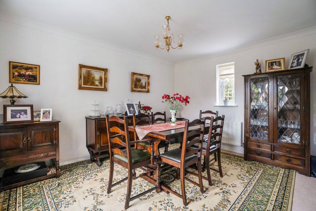 Open to the kitchen, is the spacious breakfast room, providing ample space for a large table and chairs, with French doors to the conservatory. Off the kitchen is the practical utility room with wall and base units, work surfaces, inset cream sink, built-in Smeg washer/dryer and a part-glazed side door leading to the rear garden