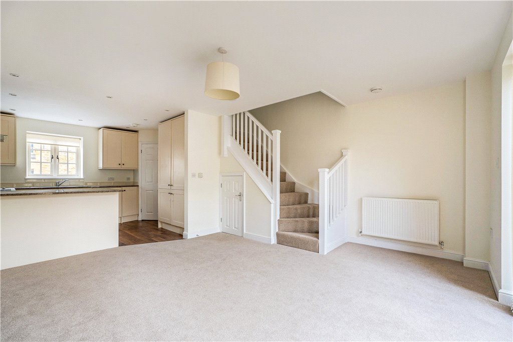 Fully fitted shaker-style kitchen with integrated appliances. Open to sitting room with understairs storage having wood-burning stove and patio doors to garden.