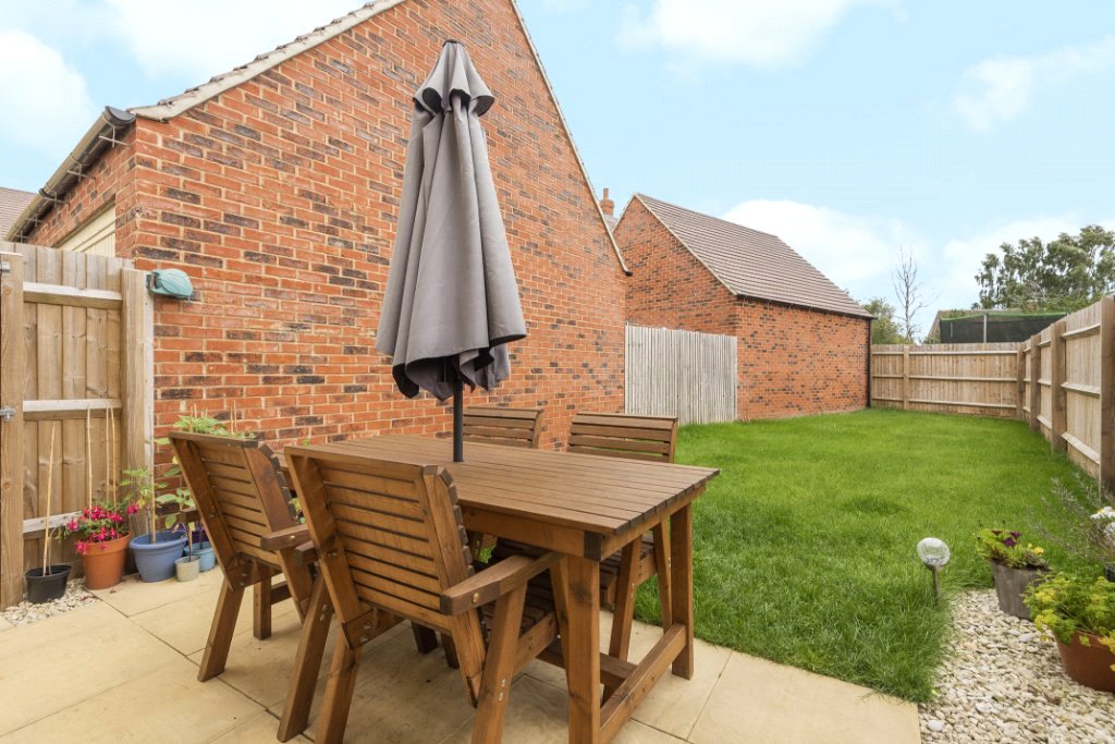 Built by CALA Homes in 2019. Entrance hall with stairs to first floor and cloakroom. Large sitting room with double doors onto the garden and space for a good size dining table. Contemporary kitchen with built-in floor and wall cupboards, and integral appliances. Two double bedrooms, each with a built-in wardrobe. Spacious bathroom, mainly tiled, with shower over the bath. Enclosed rear garden. AVAILABLE JANUARY- UNFURNISHED - NO PETS